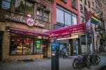 I love NY. But – of course – there’s no more morning breakfast buffet coddling. The lobby of our hotel in Chelsea was full of odd bamboo swings stuffed with feathered/fluffy pillows – no place to sit and work on the computer. I always choose to stay in Chelsea (using Marriott Reward points) because of the 24-hour Malibu Diner on 23rd and 7th. Sure, while walking there, I dodge the garbage bags that always line NYC streets (I didn’t know if the squeaky/sounds were from foraging rats or birds waking up (but how many birds are left in the city?) but I look forward to my time at Malibu diner.