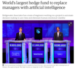 OKI grant you that Bridgewater Associates – the hedge fund to which the article refers – has very deep pockets and can invest a fortune in making this initiative work. Even the largest law firms in the world have nowhere near those resources. That said, IBM is underwriting experimentation with AI application with a growing number of law firms. When the offering gets sophisticated enough, I expect it to become pervasive in the legal profession.