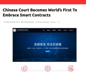 “After setting up a blockchain database within the court,” reports The Artificial Lawyer, “the next logical step for its organisers [apparently was] to find a way to integrate smart contracts – i.e. legal agreements with computable elements, which can be self-executing – into the judicial process.”