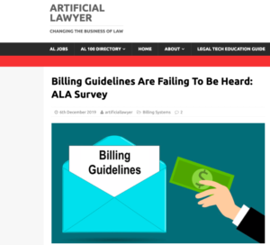 The Artificial Lawyer is reporting on a costly disconnect between U.S. law firms and their clients’ legal departments: The 2019 Annual Law Firm Leader Survey on Outside Counsel Guidelines shows that in the majority of cases, attorneys pay little to no attention to billing guidelines that have been established by their clients until it is too late. This, despite the fact that the clients normally send these guidelines to outside counsel before the work begins.