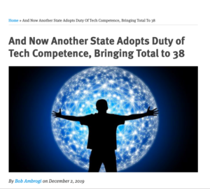 A new article at LawSites notes that South Carolina recently became the 38th state to adopt the “duty of technology competence” as a rule of professional conduct among lawyers.