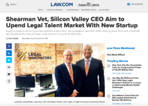 Co-founders Jonathan Greenblatt, long-time arbitration attorney at Shearman, and Bryan Parker, an experienced technology and services CEO, will address the challenging roadblocks to employment at the country’s biggest law firms by offering new law-school graduates a two-year mentoring and training program that will position them to enter the workplace as mid-level associates. A recent article in law.com reports that Legal Innovators “promises to give law students a back door into prestigious firms while offering these firms and corporate law departments a way to keep costs down on entry-level attorneys.”