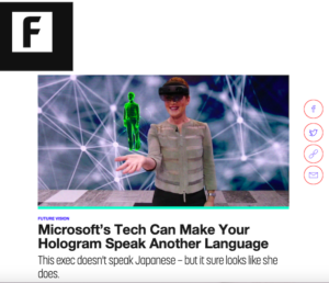 At a recent Microsoft Inspire partner conference, company executive Julie White gave a demonstration of how it’s possible “to not only create an incredibly life-like hologram of a person, but to then make the hologram speak another language in the person’s own voice.” Microsoft has combined virtual technology with text-to-speech techology to create holograms of individuals that can speak in local languages almost anywhere in the world.