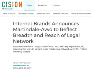 Last month, Internet Brands – a vertical marketing conglomerate in which marketing for the legal industry forms a major pillar – announced that it was changing the name of its law-services website from “The Martindale Legal Network” to “Martindale-Avvo.” The name change followed the acquisition by Internet Brands of Avvo.com.