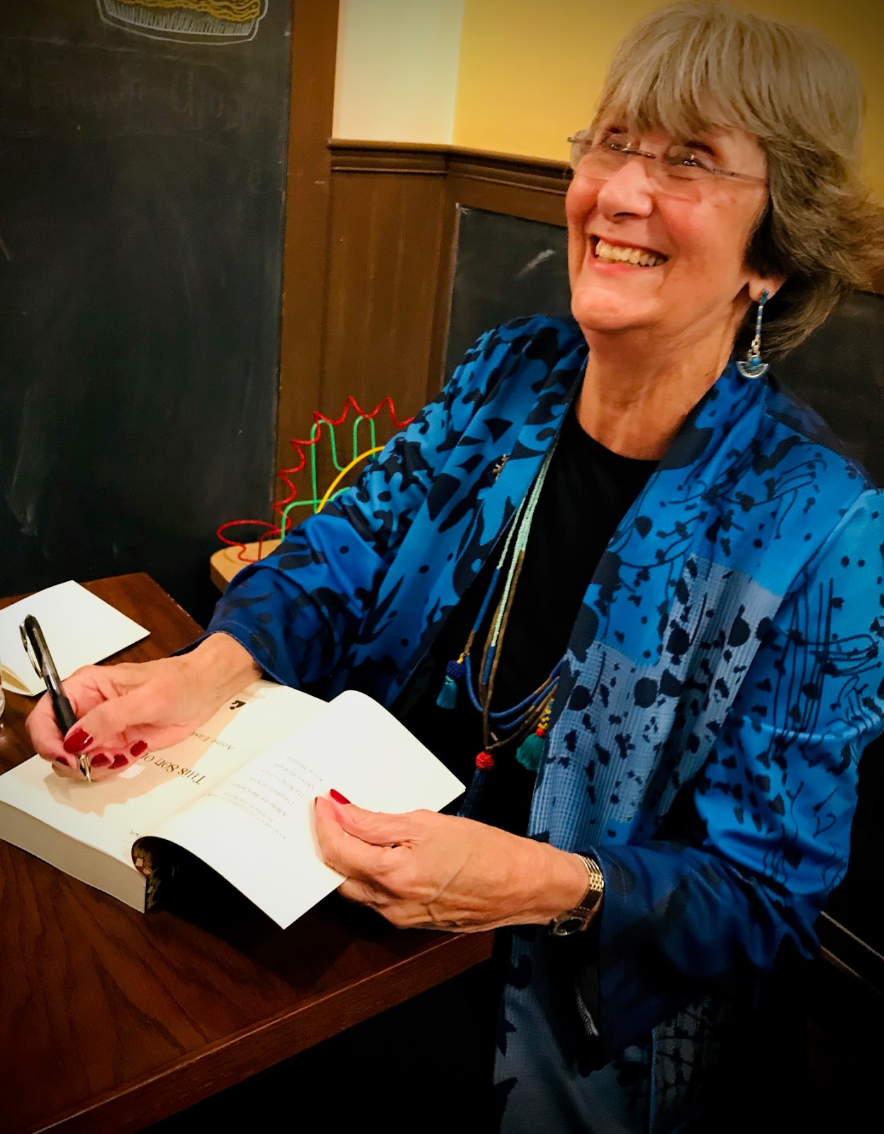 Anne signing after the Jabberwocky launch on Nov. 15th."But surely this isn't right?" I told the bellman of the brand new Trump Hotel in Chicago (yes, I know!). "I am just a lowly novelist."