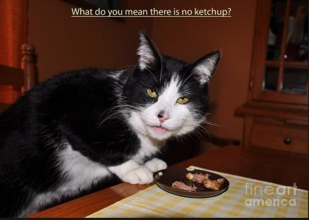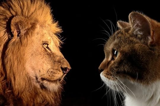 I told you last week that my cousin Lee ate every last bit of cat food and then stared at me while licking his chops. Lee is a lion and I, though exceptionally fit, muscular, and ferocious, am a housecat. It was easy to realize he was wondering how I’d taste with ketchup catsup.