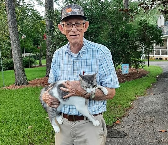 Our cat, Bertha, one of three, loves to walk our circular driveway with us. Actually, she doesn’t just walk. She meows around Charles’s ankles until he picks her up. She cuddles down as if she would ride there in his arms forever. But sometimes before we’ve even gone around a bend she wants down. She enjoys the lift but suddenly leaves the safety of her ride when something more attractive claims her attention–a bird in the grass, a squirrel flirting at the base of a tree.