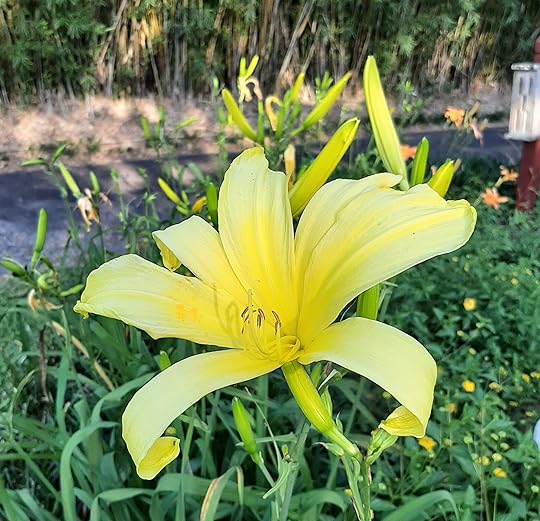 The knockout roses in front of the house were beautiful when they were beautiful but they didn’t like their place very much. One by one they died or at least became scraggly. At one end of the row they were shaded by a magnolia tree and those bushes were never happy. So we took them up and planted Florida Sunshine shrubs. The guys at the nursery assured us they would thrive in sun or shade.