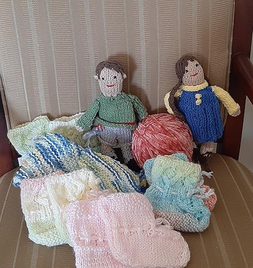 My four sisters and I are all knitters. We have knitted for each others’ babies as well as our own children and grandchildren. Now we’re knitting for great grandchildren, nephews and nieces. Suzanne is in a knitting club. All those ladies make prayer shawls for cancer patients and others. Pat could knit very fast without even looking, even knitted in class as a college student! She loved to knit sweaters for needy children in cold places. Ginger strove for perfection in creating beautiful sweaters. Jackie is talented in making sweaters with intricate colorful designs, like birds in flight. To all of us, visiting a yarn shop is almost as fun as Christmas morning. When one of us is having health issues or some other hard patch, the question from sisters is “Are you able to knit?” If the answer is affirmative, we know all is well.