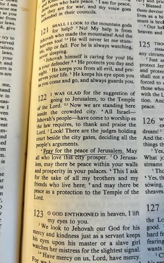 Charles and I were in Israel in 1996. I remember clearly the earnestness of our Palestinian Christian guide when he said, “Pray for the peace of Jerusalem.” I have not always remembered to pray for Jerusalem but now, after October 7, am so graphically reminded. We know complete peace in the mideast and the world will not happen until Jesus comes. But there can be peace in the hearts of those who honor Him. There can be peace in the midst the war.