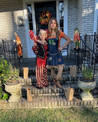 I’ve never thought I would like to go to one of those costume balls where identities are so disguised that one actually dances with strangers. But I do take delight in the costume fun of children at Halloween. Kaison informed me that he wouldn’t wear his mask when he came to our house because I might be too scared. Then when he arrived he wanted me to put on his very vivid clown mask. Charli said she would be a scarecrow. She, along with other cheerleaders, had a booth at “Boo on Broad”, a festival of costumes and treats for the children in Cairo. Broad Street was blocked off for the occasion. Charli arrived here as the cutest scarecrow I ever saw, painted face and all, with crazy clad feet that couldn’t stop dancing. The surprise costume to enter our kitchen where chili bubbled in the pot was our grown Candi in a fully inflated animal balloon suit, four legs, long ears, and fat arms. Only her laugh gave her away.