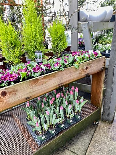 As I left the optometrist a few days ago I was met with a lovely sight: Ravenna Gardens. I couldn’t help but stop to admire the lovely arrangements and blossoms. How did I manage to get out of there without purchasing anything? By reminding myself that it is too early to plant in our garden—I’ve made that mistake before. It’s in the upper 30s right now. Too cold for planting. But soon!