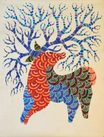 Bara Singha (deer with 12 antlers) by Jangarh Singh Shyam