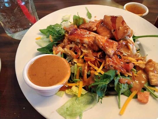 I rarely go out to eat, but a friend is retiring from our workplace so I wanted to take her out to lunch to celebrate. Our first thought was Chillicothe, where there are a lot more choices for restaurants and thrifting, which is one of our favorite things! But they were predicting some nasty weather and by noon the snow had already been falling for a few hours. Since Chillicothe is thirty minutes from here, we decided to stay in town. Our town has no shortage of places to eat and we decided on Bob Evans. I’m glad we did. I got the Wildfire Chicken salad and sourdough rolls and it was delicious!