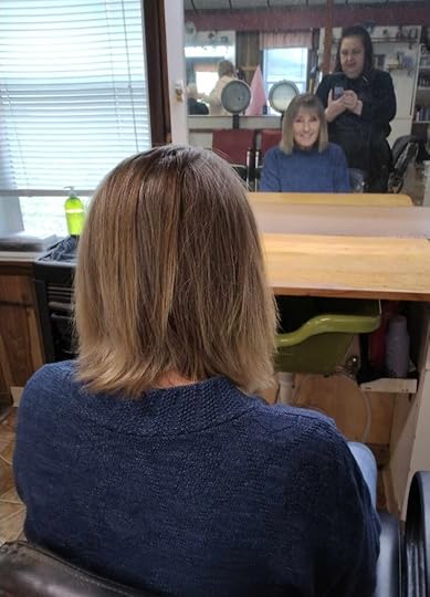 I haven’t been feeling that great the last few weeks and thought a visit to the salon might give me just the boost I needed. Turns out I was right. I’ve been coloring my hair since I was sixteen years old. I’m just done. For the last several months my stylist has cutting away the last of the color. This morning’s visit took care of most of it and one more good cut around July should do it. I’m pleasantly surprised that there isn’t more gray. The streaks I have, I can live with. At least for now