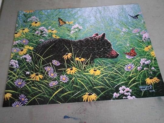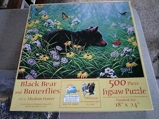 By the time I got back to town the temps had dropped below freezing. Half the city is currently flooded and half is without power. All that to say, it seemed like a good day to get back in jammies and work on my puzzle: Black Bear and Butterflies. What a nice way to spend a crazy-weather Sunday! This was a fun one. Like a great book, I almost hated to finish it