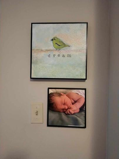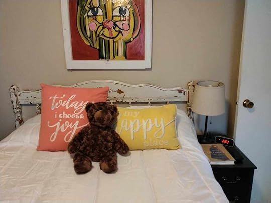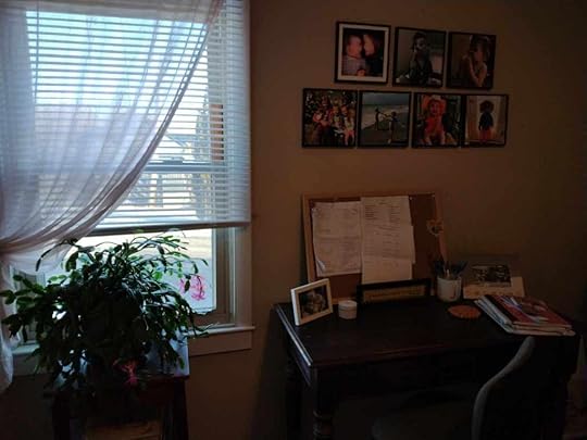 Did I mention my house is small? The bedroom also doubles as my office. My writing desk and a small computer desk are in the only places they fit, but I did rearrange my gallery of my granddaughters’ pictures. Tile Pics are wonderful for renters. They have adhesive backs so no nails are required, and you can move them around with no damage to the paint. And I was able to use the plant stand for my Christmas cactus, bringing some greenery into the space!