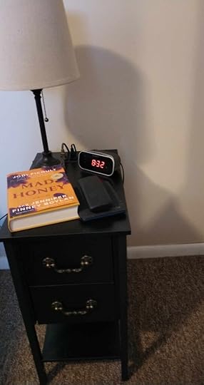 A few days after I bought the bedding I picked up this cute nightstand from a friend of a friend. The room is very small, and I had been using a plant stand. It wasn’t really big enough to hold everything, but it was all that would fit in the space. I love the “antiquey” vibe of the nightstand and it even has plugs built in for my lamp and clock, plus two USB ports for my Kindle and phone!