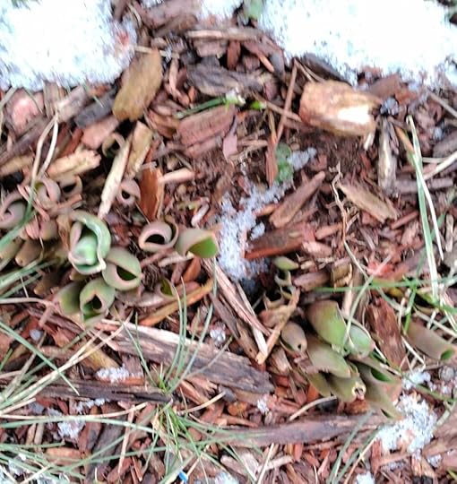 It was even warm enough to sit outside with my coffee this morning. I was greeted by a couple of robins in the sugar maple, and I was happy to see a male and female bluebird popping in and out of the nest box. And… my tulips and daffodils have started coming up!!