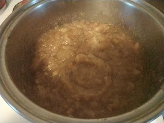 This fall a friend and I went apple picking. I brought home my haul, peeled and cut them into slices and stuck them in the freezer for a rainy day. Well, I have today off and it’s raining, so… Applesauce!
