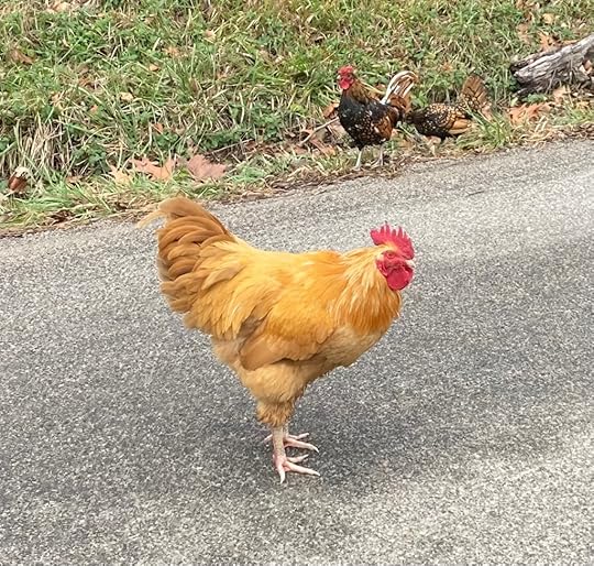 I did not take these photographs, but isn’t he a beauty? They were taken by my sister on one of her morning walks. Out in the country where you can raise chickens and roosters to your heart’s content