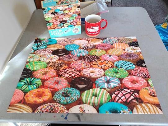I finished this one the other day. It was a lot of fun but a little more challenging that I thought it would be, given that so many of the donuts have similar colors. But what a yummy way to spend a few hours