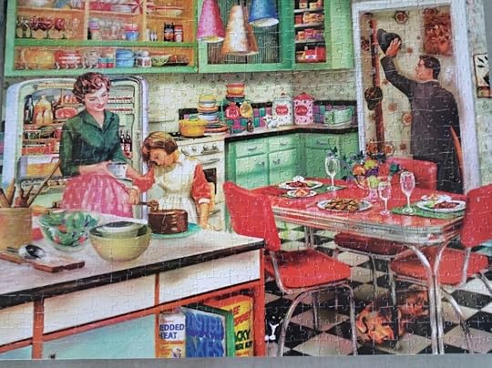 I didn’t remember that I’d done many puzzles this year, but looking back through my pics I see that I have done six. I love the whimsical scenes, especially this ‘Fifties kitchen.