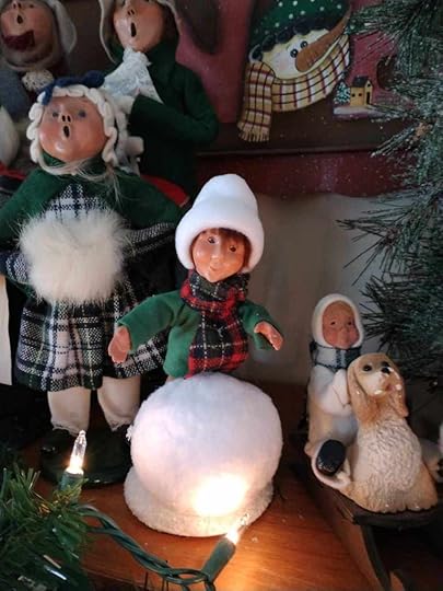 I had such a lovely Christmas day. It was a day of good food, good friends and family. The highlight was a video chat with my granddaughters. Not as good as real cuddles and kisses, but I will take it! I was also given a very lovely gift. My sister got me a new caroler for my collection. This one is called “Toddler with Snowball.” Isn’t he the sweetest?