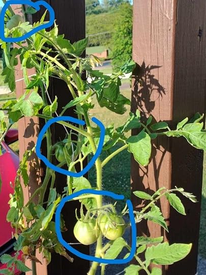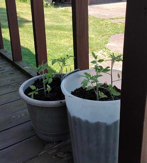 The other two seem happy. I have several blossoms and four Big Boy tomatoes so far!