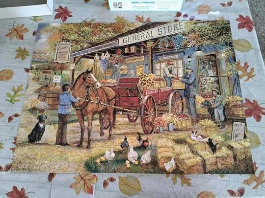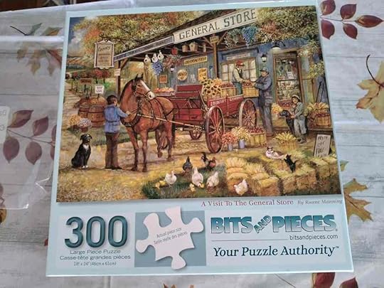 Just 300 pieces, I was able to finish it in two sittings. So fun and relaxing. I wanted to walk right into this puzzle and see what was inside that store! How I have missed my puzzling over the summer.