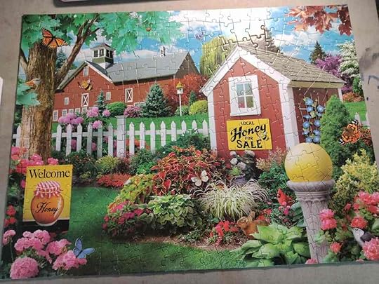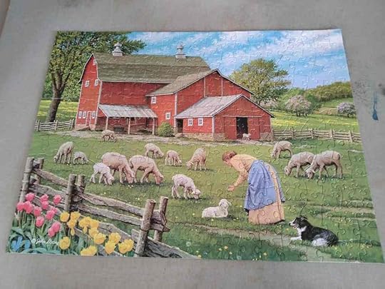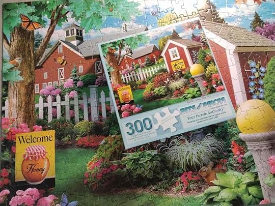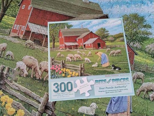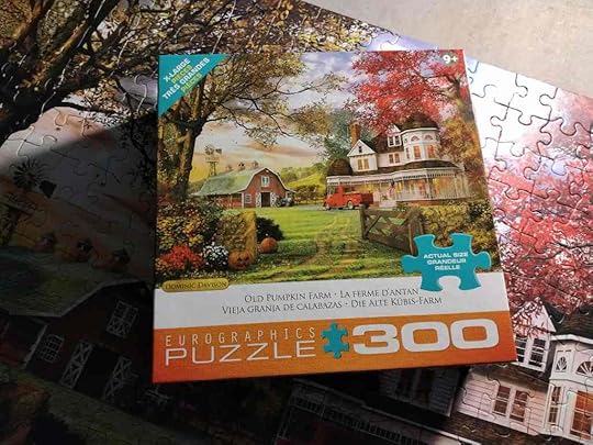 Back at the beginning of summer a woman came into the store where I work and wanted help printing out some photos she had stored on her phone. Easy enough. We plugged her phone into the kiosk and when her photos appeared on the screen, hit “print all.” There were three hundred of them – all puzzles! Turned out she was decluttering (I really need to do that again!) and had taken pics of the puzzles she’d completed in the last few years so she could pass the puzzles on to others and still have a lovely photo album showcasing her work. I was delighted to have found a kindred spirit. We talked for a long time about our favorite brands and themes of puzzles. I particularly liked her farm scene puzzles, and I told her so. The next week she came back to the store with a bag of puzzles for me! Since it was summer and I am mostly a cool weather puzzler, I tucked them in the back of the closet for later. Normally my puzzling season begins in October, but I started in September this year.