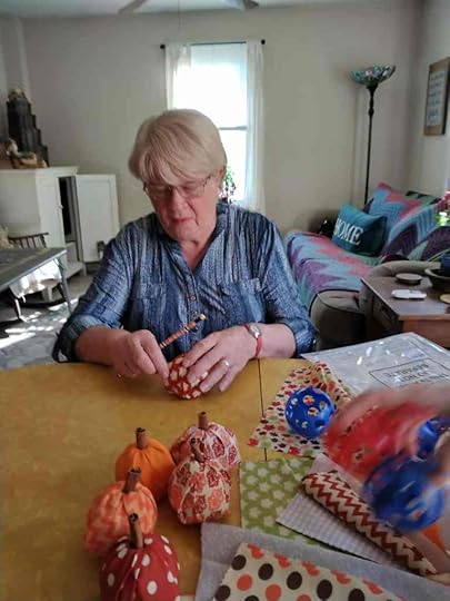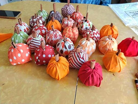 Our church is hosting a prayer tea this month, so I invited some of the girls over this morning to help make table decorations– crafty little pumpkins that we will pair with acorns and colorful leaves. It was a super simple craft, using just wiffle balls, colorful squares of fabrics, and cinnamon sticks. But so much fun to make!