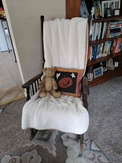 I found books and candles and a cute pumpkin pillow for my rocking chair.