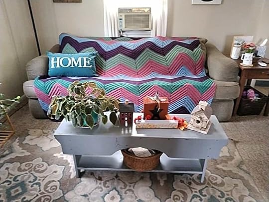 I found a beautiful afghan for my couch for just two dollars. As a crocheter of blankets, I can appreciate the time and love that went into this one. Look at all the gorgeous colors!
