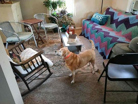 Miss Emma waiting for the ladies. She knew something was up when she saw the outdoor chairs indoors!