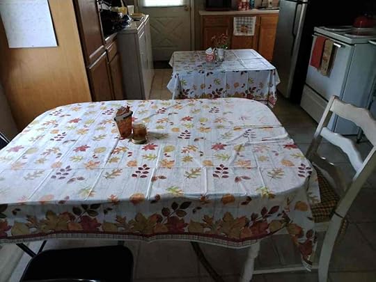 After a lengthy wait in the drive through, and then another lengthy wait in a parking spot, we finally got our food and were on our way again. But by then Michael had had enough of an outing. He was ready to go home. I reminded him about the little table, and the spooky signs we were going to paint. About Miss Emma being in her room. No dice, lol.