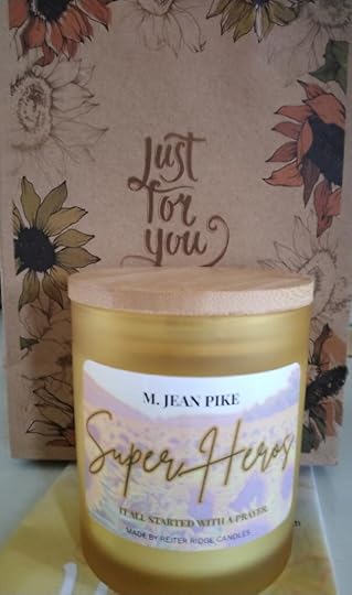 And look at this custom- made Superheroes candle she ordered from our favorite candle lady!