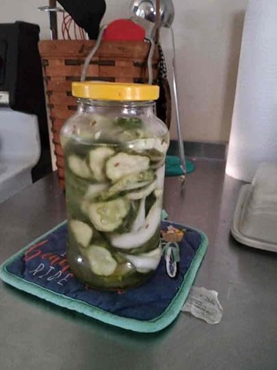 I also had a new kitchen adventure in August. Freezer Pickles! They are much sweeter than the dill I usually make, but the sweet, tangy taste is a nice change, and they are quick and easy to make