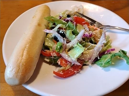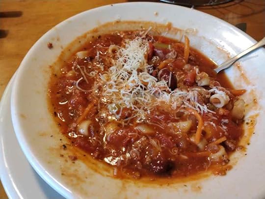 Sharon wanted to treat me to a late birthday lunch, so we headed to Olive Garden for lunch and more girl talk. Since I am eating healthy now, I opted for the soup and salad lunch. It was the perfect choice for a hot summer day.