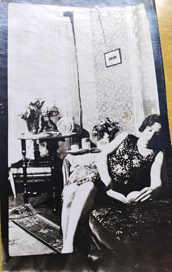 I’ve always been fascinated by this picture. It was sitting, long forgotten, in a box of old family photos. I have no idea who this woman is, but I love her. Sitting there in her pretty dress, a cup of coffee by her side and a book in her hand, she is my kind of people