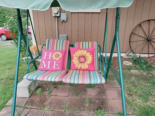 In the summer I love to sit outside and read. The only thing sitting on my swing this year is pillows.