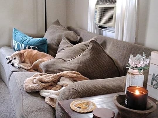 Miss Emma is feeling the heat, too. At twelve years old, she’s not really a high energy dog under the best circumstances, but lately all she wants to do is lie in front of the AC. She doesn’t even try to pretend she hasn’t been sitting on the sofa pillows anymore.