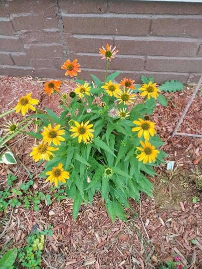 I wait all year for this lovely cone flower. It amazes me that it blooms in three colors- orange, red and gold!