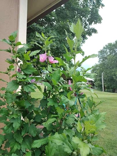 My Rose of Sharon popped open this week! I love the showy purple blooms, and there are TONS more about to pop!