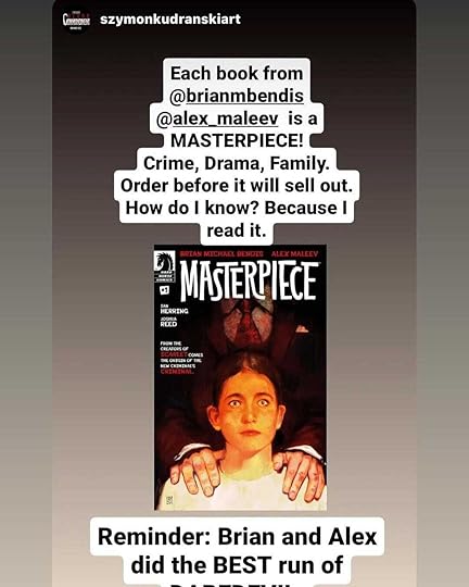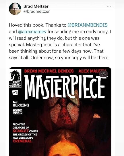 BRIAN MICHAEL BENDIS: Fresh testimonials celebrating our new Dark Horse crime comic extravaganza MASTERPIECE co-created by the amazing Alex Maleev! Pre-order one of these gorgeous covers for yourself today from any great comic store anywhere. That’s how it works. You order it, we will print it! I can’t wait for you to see what Alex and Ian have made here. Thank you for supporting creator-owned comics! Thank you to all my lovely peers for their generous thoughts and time. And thank you.