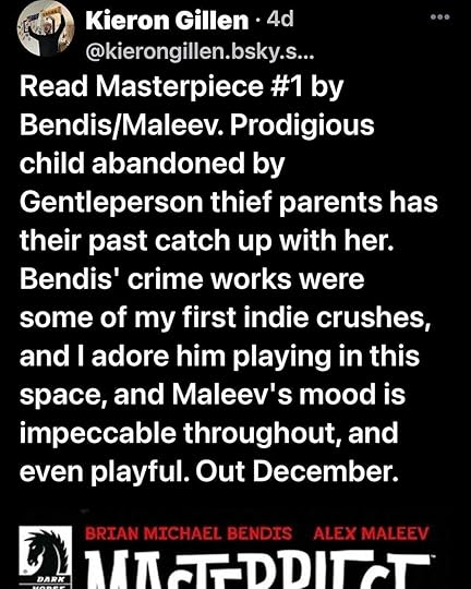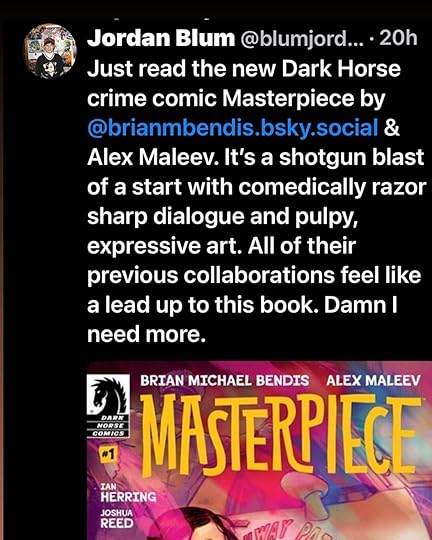 MASTERPIECE ANNOUNCED!Coming this DECEMBER from our friends at DARK HORSE COMICS, MASTERPIECE reunites Bendis and artist ALEX MALEEV, along with IAN HERRING and JOSHUA REED, for an all-new crime saga!