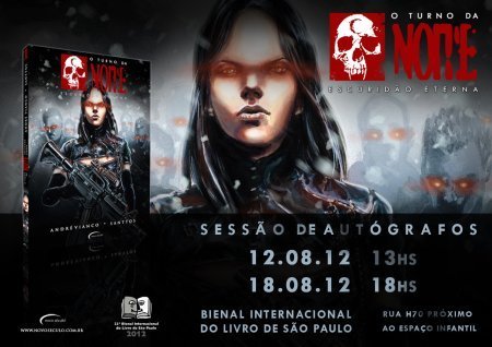 dia 16, quinta-feira, 19hs, lançamento da HQ “O turno da noite – Escuridão Eterna” no stand da Livraria Saraiva.