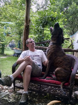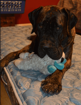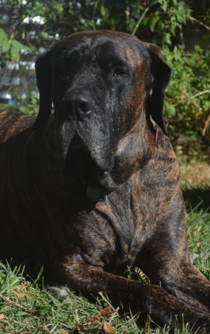 The whole process whereby we got Clarence remains a little unclear to me. We had had three dogs for a while, and Duke died. Jim got in touch with a group that did mastiff rescue, and then had his heart stolen by Louis, so we had three dogs. And then the mastiff rescue people got in touch with us. They had a four-year old mastiff. And so we ended up with four dogs.