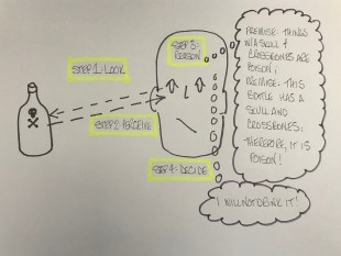 That’s wrong, as I’ll discuss, but it’s importantly wrong because this explanation of what happened in Nazi Germany can make people feel good about themselves while they’re replicating the errors that Germans made. It says that, if you believe you are thinking critically about what a rhetor says, you are making sure it fits with what you think is ethical, and you only put your trust in someone you think is ethical, then you will never make the mistake Germans did.