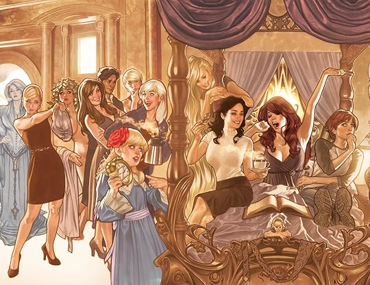 The other origin of Fairest was Adam Hughes, who is our wonderful cover artist. A few years ago at a convention Adam asked me if he could be the cover artist on Fables. I told him we had just found a new cover artist, so the answer is no. However, if you’re serious, says I, I’ll create a new Fables series for you, which I did.